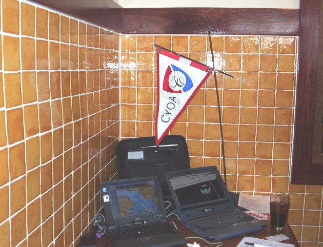So much for paper manuals. During the early days of Columbia, computers were bigger and weighed more than the boats. Here we had two laptops and a third owner brought a copy of his manual on CD. All these pictures were taken with digital cameras. How times have changed.