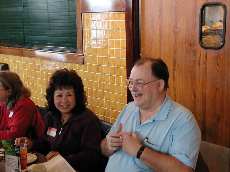 "Bill installed one of those for me. You should get one, too." Kathie gets pointers from Cathy.