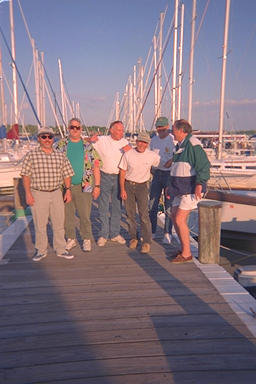 The "Hall of Masts". (l to r) Keith, Fitz, Capt. Jim, Mike, Eric, Joe.