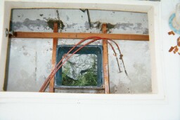 The lazarette or engine compartment on the Challenger is big.  In fact, it is too big.  With an outboard motor installed in the well, you could put two six gallon fuel tanks on each side and still have a little room left over.  The bottom of the compartment is the hull.  A fuel tank set in the compartment slides towards the center and there is no convenient way to tie the tank down.  When underway in waves over a couple of feet, water splashes into the compartment through the motor well.  The motor well is a fiberglass box that rises from the hull about a foot into the compartment.  The walls of the box have to be reinforced to give the motor clamps something tighten against and top edge of the walls also needs something for the weight of the motor to sit on.