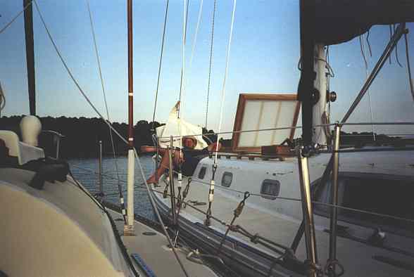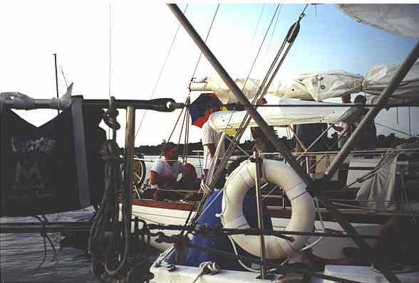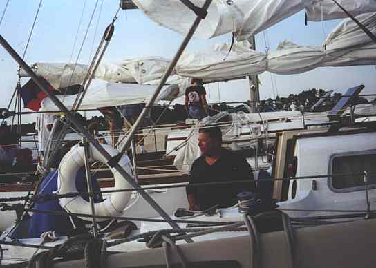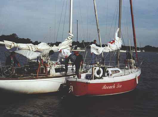 Rafting Up. Harvey Kabran brings Rooach Tov alongside Pelago.